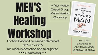 Men of the church are invited to participate in “From Broken Boy to Mended Man,” a four-week men’s healing workshop facilitated by Deacon Lawrence Coleman. This small group workshop will focus on authenticity, restoration, and brotherhood.